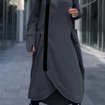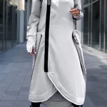 ✔️ Détails uniques – L'ourlet asymétrique et le design long allongent la silhouette et rendent le vêtement immédiatement reconnaissable.